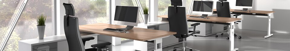 Höhenverstellbare Schreibtische sind ideal, wenn mehrere Personen denselben Tisch verwenden, zum Beispiel an flexiblen Arbeitsplätzen. Jeder Benutzer hat die Möglichkeit, die Schreibtischhöhe je nach Wunsch individuell einzustellen. Höhenverstellbare Schreibtische eignen sich auch für Rollstuhlfahrer und Menschen mit Behinderung. Man unterscheidet hier zwei Arten: Höhenverstellbare Schreibtische mit Handkurbel und elektrische, also vollautomatische. Beide funktionieren hervorragend! Die manuell verstellbare Version ist preisgünstiger. Die elektrische Version ermöglicht die Einstellung von auf einen bestimmten Benutzer angepassten Standardstufen und kann per Knopfdruck eingestellt werden.